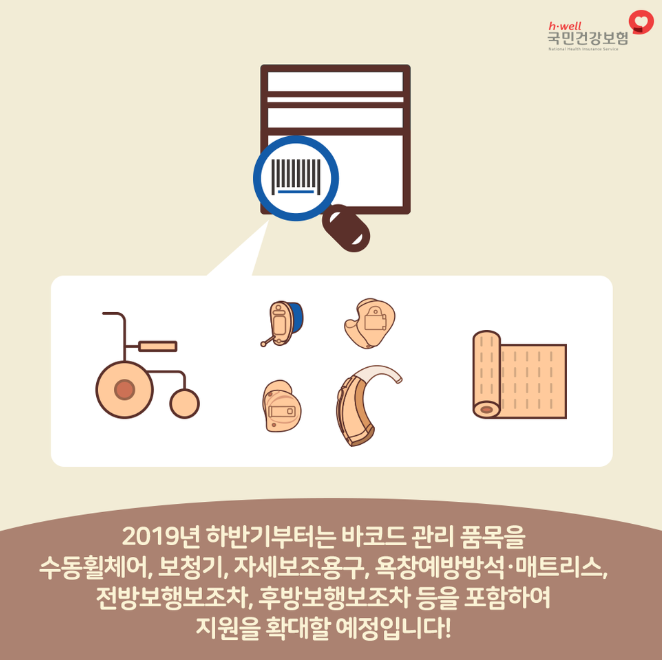 상기 7개품목은 19.7.1 이후 구입한 보장구 청구 시 바코드가 부착된 사진을 제출해야 하며, 바코드가 부착되지 않은 장애인보장구는 건강보험 급여청구가 불가하니 반드시  유념하시기 바랍니다.