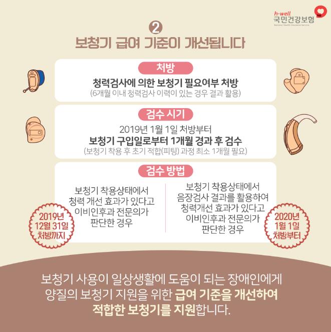 아래와 같이 보청기 사용이 일상생활에 도움이 되는 장애인에게 양질의 보청기를 지원하기 위하여 급여기준을 개선하였습니다.