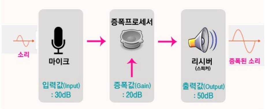 이렇게 소리를 증폭하기 위해 원래 소리 강도에 추가로 원하는 소리 강도량을 더하는 것을 "이득 조절"이라고 합니다. 다시 말해 이득을 조절한다는 것은 소리의 증폭량을 조절하는 것과 같습니다.