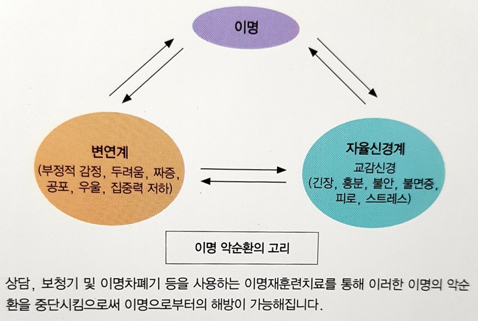 하지만 이명을 적절히 치료하지 않으면 이명에 대한 이러한 부정적인 생각과 정서적 변화가 뇌의 변연계와 자율신경계에 영향을 미치게 되어 부정적인 악순환의 고리를 만들게 됩니다. 그 결과, 이명에 대하여 피질하중추신경계에서 소리를 걸러내지 못하고 더욱 예민하게 반응하여 작은 이명마저 놓치지 않고 예민하게 탐지해, 대뇌 피질을 더 잘 자극하게 됩니다. 이로 인하여 뇌는 이명의 소리를 더 크게 느끼게 되며, 더 진행되면 이명이 아닌 외부의 일반적인 소리에 대해서도 공포증이나 소리 과민증과 같은 증세가 나타나게 되는 경우도 있습니다.