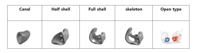 [그림설명] full shell의 갑개부분만 제거한 형태로 착용감이 좋고, 시원한 느낌으로 낮은 출력을 사용하거나 CI (인공와우)를 착용하는 아동에게 대부분 사용됨