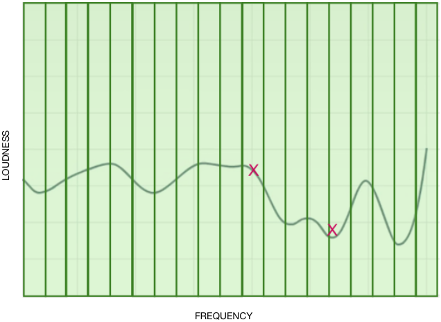 이 그래프를 보면, 청각 전문가가 9개의 주파수대역을 측정한 것과 일치하지 않습니다. 저가형 저채널 보청기가 도움이 될 까요? 그렇습니다. 그러나 청력손실에 대한 증폭을 보다 정확하게 형성할 수 있는 음원의 음질은 없습니다.