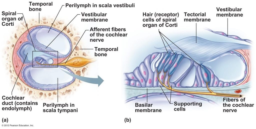 우리가 들을 때, 섬모세포, 즉, 내이에서의 움직임은 청각 신경에 신호를 보내는데, 이것은 전정 신경 또는 제 8의  뇌신경으로도 알려져 있습니다. 이러한 신호는 신경 세포 사이의 중요한 접점인 시냅스를  교차해야 합니다.