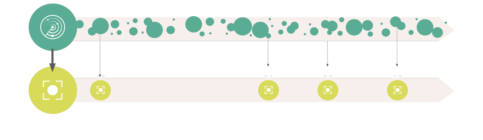 두개의 서브 시스템이 함께 잘 작동하면, 나머지 뇌는 최적으로 잘 작동할수 있어서 소리를 인식하고, 저장하고, 기억하고 현재 일어나고 있는 일에 반응하는 것이 더 쉽습니다. 아래의 그래픽 이미지와 같이, Orient 하위 시스템은 사운드 장면을 스캔하고 Focus 하위 시스템은 관심있는 소리에 초점을 맞춥니다.