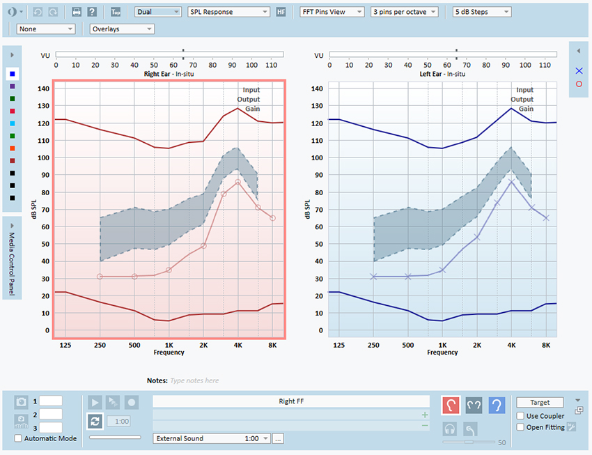모든 REM 프로토콜이 Nal 및 DSL 전용으로 설계 되었기 때문에 REM을 사용하여 확인할 수는 없지만, 제어된 음성 신호가 환자의 잔존 청력 범위내로 증폭되도록 라이브 음성 매핑을 사용하여 확인할 수 있습니다 . 저 개인적으로는 라이브 스피치 매핑이 더 나은 선택입니다. 그것은 주로 제가 Nal이나 DSL에 얽매이지 않기 때문입니다.