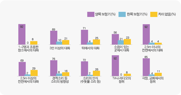 보청기 양측착용에 의한 장점을 정리해보면 다음과 같다.