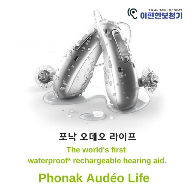 보청기가 방수가 된다면 확실히 좋은 특혜가 되겠지만, 아쉽게도 현재 시장에서 사용할 수 있는 진정한 의미의 완전방수 보청기는 거의 없습니다. 대신, 대부분의 보청기는 방수 기능이 있습니다. 즉, 물에 잠기지 않아야 하지만 약간의 습기는 견딜 수 있습니다. 이러한 가운데 세계 최초로 아래 언급할 IP68 방수등급을 뛰어넘어 수심50M 방수테스트, 염분이 포함된 수영장 물이나 땀에도 견딜 수 있는(제조사 의견) 포낙 오데오라이프(Phonak Aideo Life)라는 신모델이 출시되었습니다.