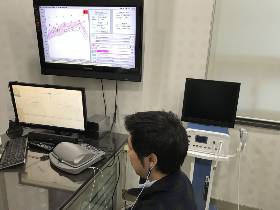 귀에 착용한 보청기의 이득이 환자에게 적합한지를 확인하는 방법으로  1) 실이측정(real ear measurement, REM)과 2) 음장이득측정(sound field measurement)이 있습니다. 적합확인 과정을 통해서 보청기가 환자의 청력 및 목표치에 얼마나 가까운지를 확인하고 보청기의 미세조절을 통해서 환자의 청력에 가장 적합하게 만들게 됩니다.