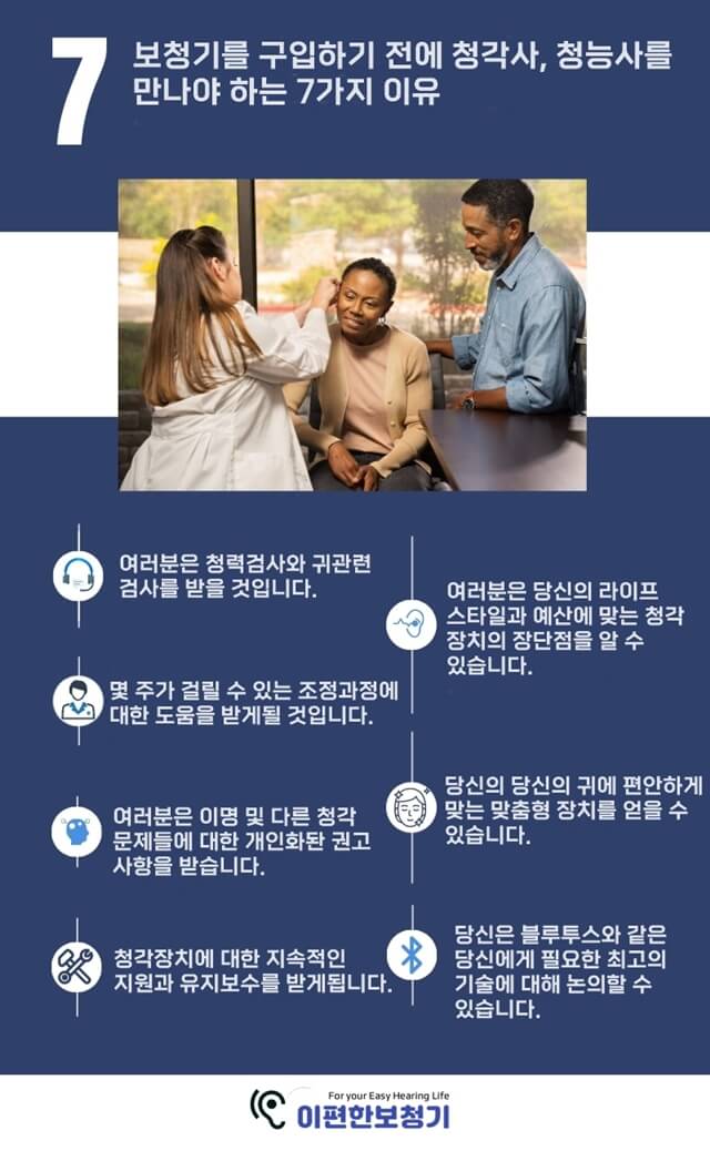 [고양시보청기] 보청기를 구입하기 전에 청각사, 청능사를 만나야 하는 7가지 이유 - 이편한보청기